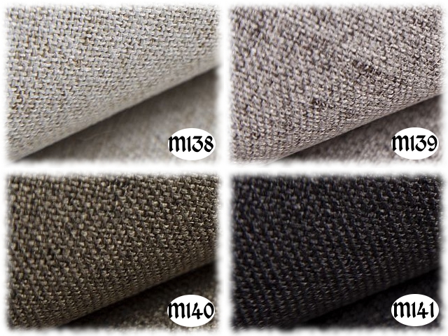 Tkanina imitująca naturalny len, mocna i wytrzymała na ścieranie w naturalnych kolorach (100 000 cykli, gramatura 330g/mb).