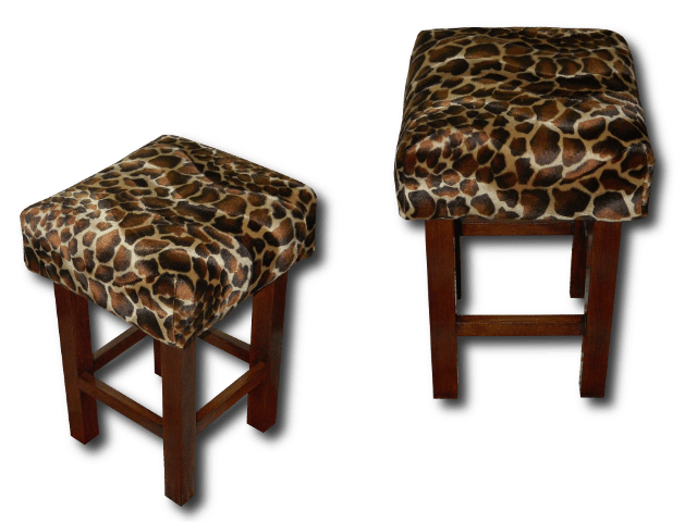 Taboret klasyczny – tapicerowany motywem animals, wzór: żyrafa, kolor: palisander(lakierobejca). Wysokość: 50cm, siedzisko: 34cm/34cm.